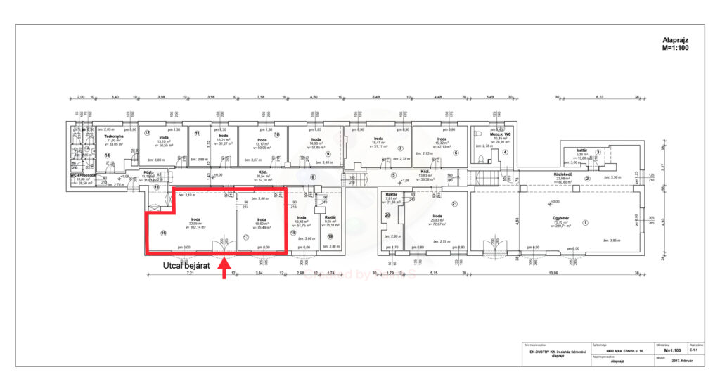 Az iroda két összenyitható helyiségből áll. Az irodaházban jelenleg egy szabadulószoba, gépészeti bolt, informatikai cég és egy műkörmös található. Megtekinthető előre egyeztetett időpontban.